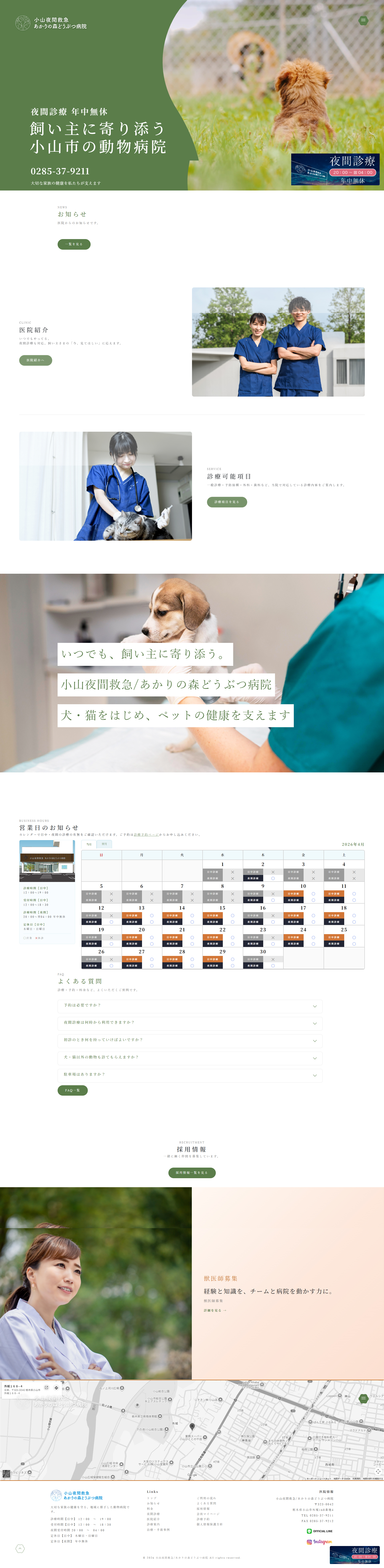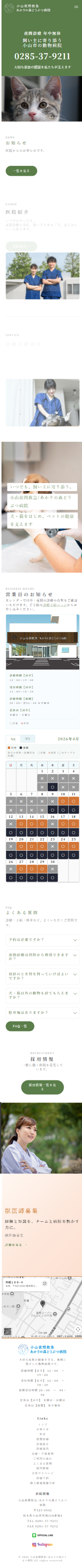 小山夜間救急/あかりの森どうぶつ病院様のホームページ制作実績